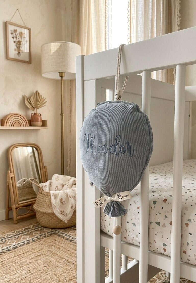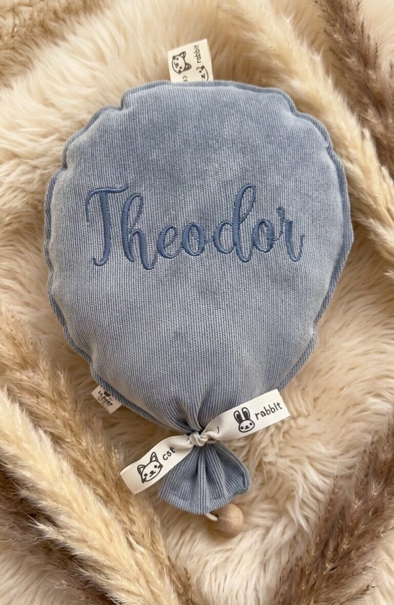 Breng een luxe touch in de kinderkamer met onze handgemaakte ballonnen van velvet ribstof. Verkrijgbaar in vier stijlvolle kleuren—blauw, beige, taupe en roze—zijn ze perfect voor elke interieurstijl. Geborduurd met de naam van je kleintje.