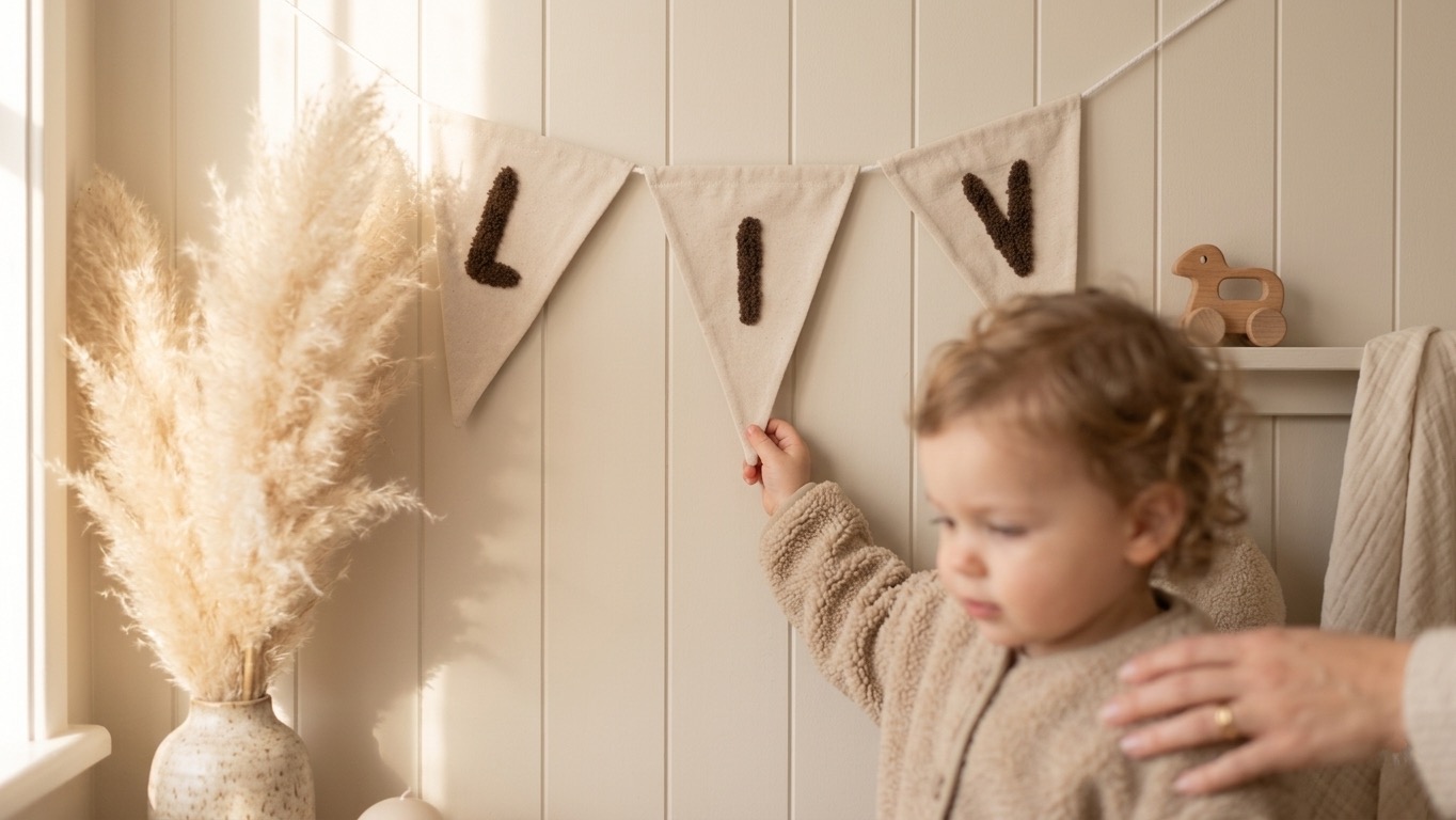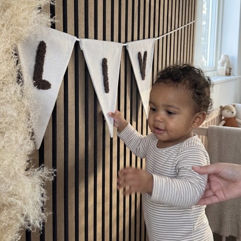 Een slinger met naam geeft direct sfeer en karakter aan de ruimte. Of je nu kiest voor een rustige, neutrale babykamer of juist een warm geheel; dit item biedt de ideale balans tussen stoer en lief.