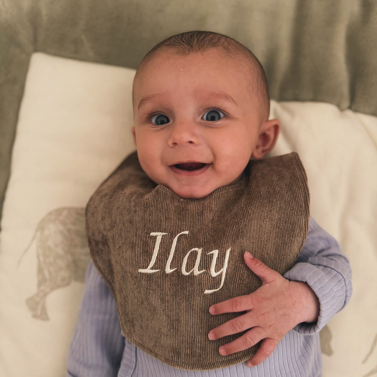 Maak kennis met ons gepersonaliseerde velvet rib slabbetje, dat de perfecte mix biedt van stijl, comfort en personalisatie voor jouw kleintje. Dit unieke slabbetje ontvang je met de naam van je kindje, waardoor het niet alleen praktisch is, maar ook een prachtig persoonlijk item. Bovendien vervaardigen we elk slabbetje met liefde en aandacht, en je kunt kiezen uit verschillende lettertypes. Dit zorgt ervoor dat het slabbetje helemaal naar wens is en elke naam er schitterend uitziet. Kortom, dit maakt het slabbetje een fantastisch cadeau, zowel voor jezelf als voor een babyshower!
